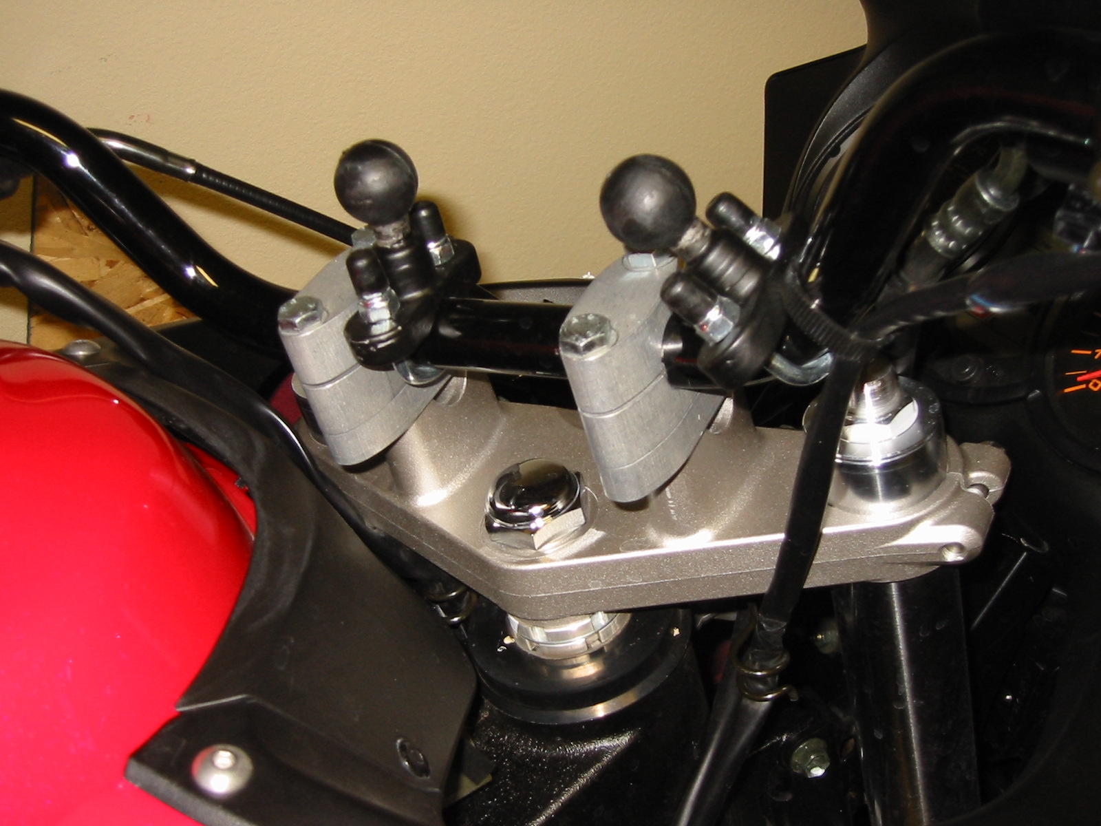 The first product is an offset bar riser that provides 1.25" of rise and 5/8" or 1" rearward offset. These risers are used with the offset in the rearward facing position to bring the bars back and upward to provide a more comfortable and upright riding position. No relocation of instrumentation is necessary if the bar risers are mounted with the offset facing rearward.